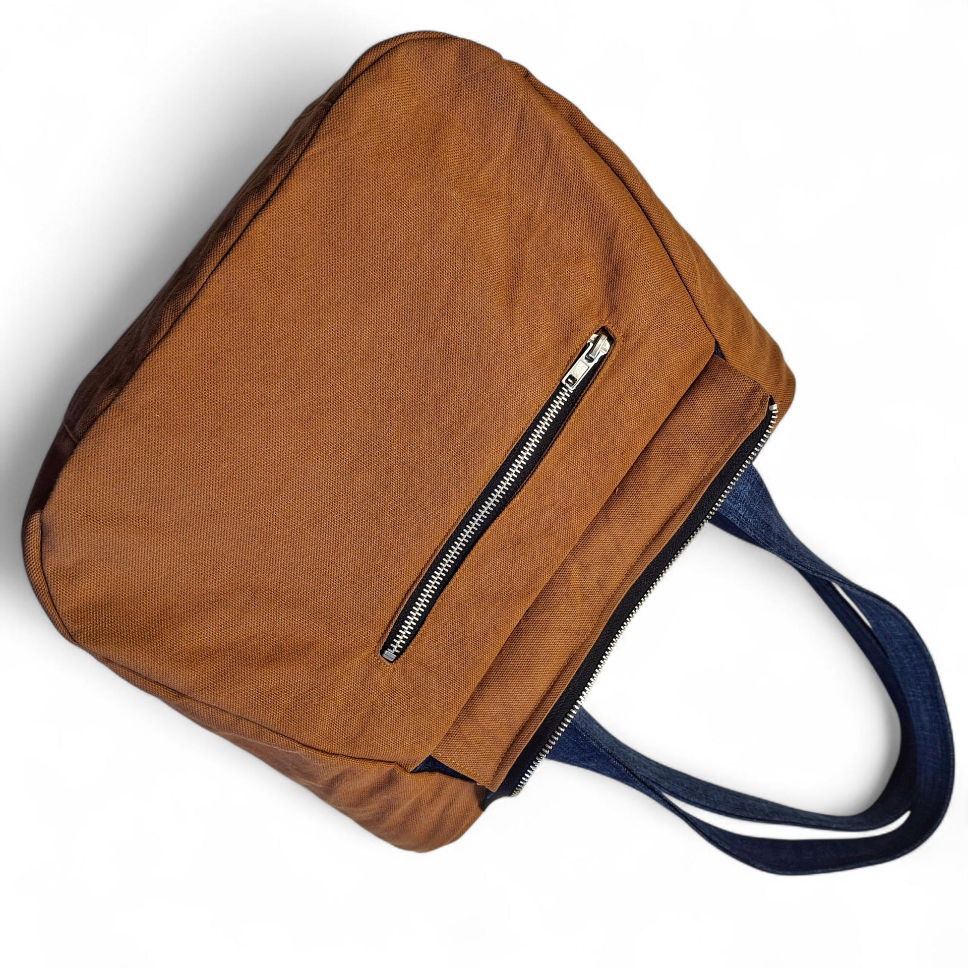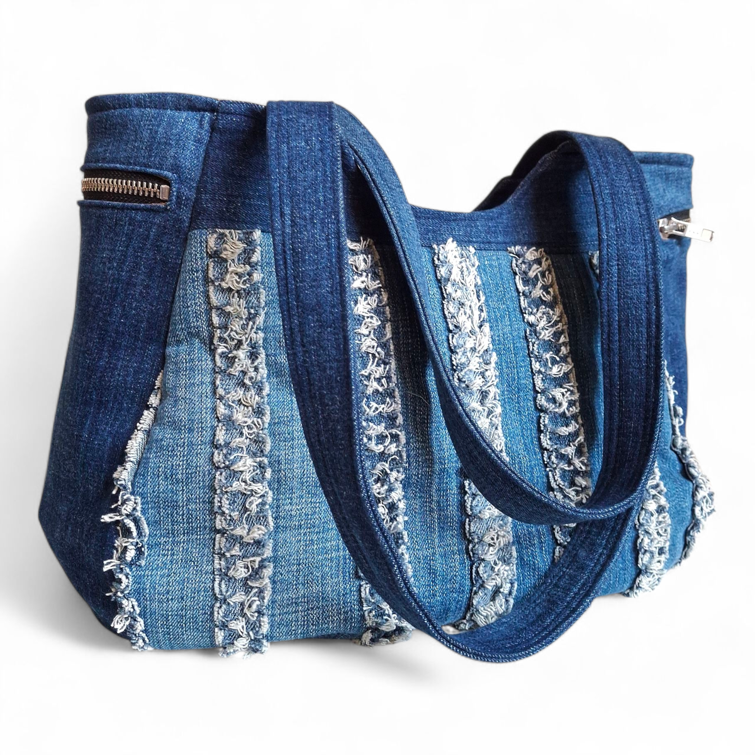 - Buitenzijde: hergebruikte blauwe denim